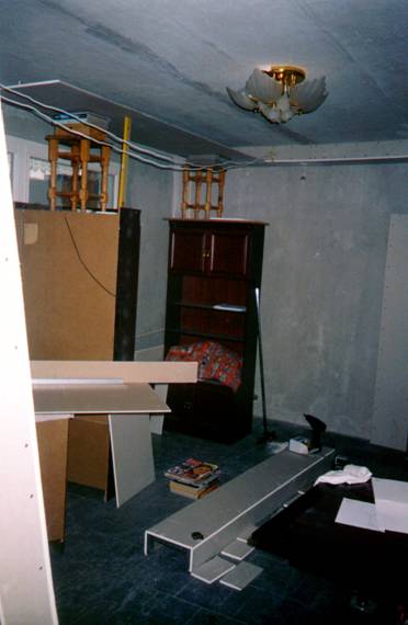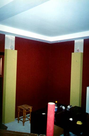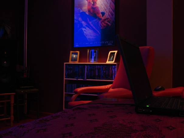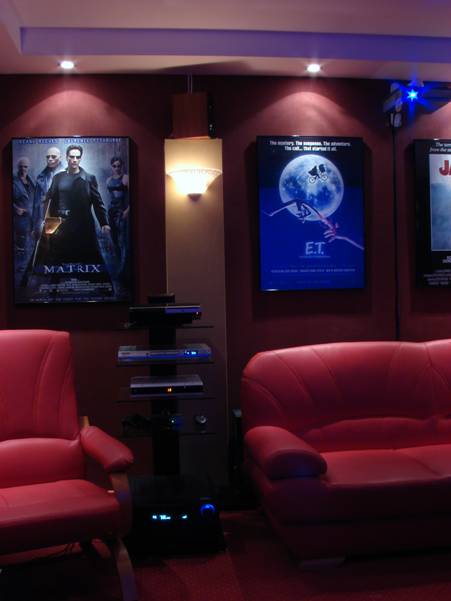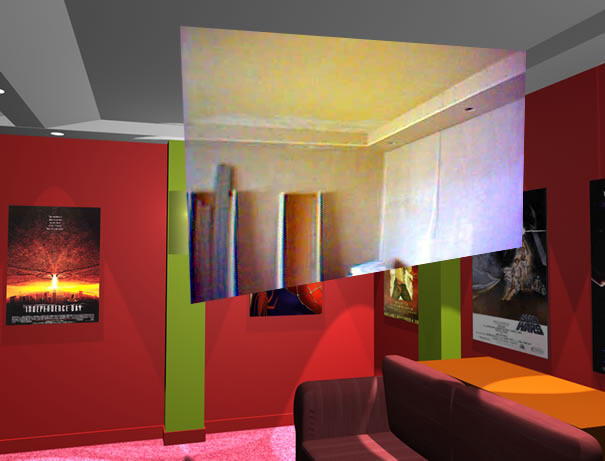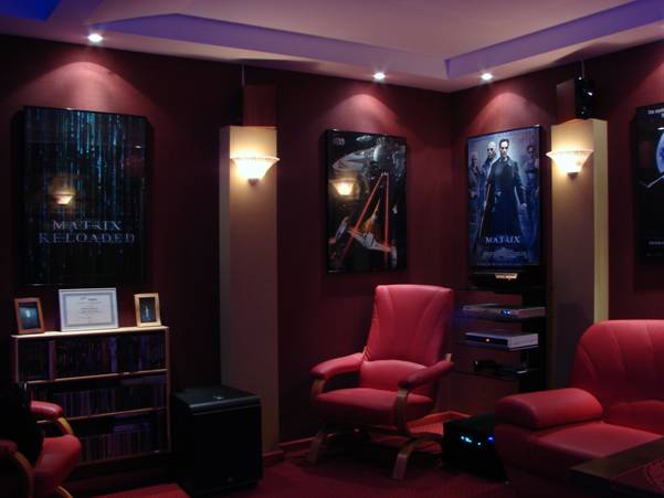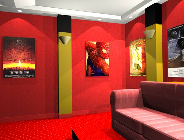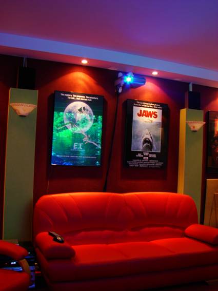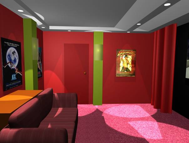 Chciałem poeksperymentować troszkę z oświetleniem i kolorami, aby zobaczyć jak to wszystko będzie w rzeczywistości wyglądać. Podkreślam, że nie mam nic wspólnego z architekturą i budownictwem. Wszystko co tu popełniłem narodziło się w mojej głowie w dość spontaniczny sposób. Owszem, wcześniej przejrzałem setki stron amerykańskich magazynów poświęconych tematowi Home Theater, ale ja jednak postanowiłem zrobić coś troszkę innego, prostszego, niezbyt drogiego, coś co będę mógł wykonać własnymi rękoma, bez niczyjej pomocy, z wiedzą którą już posiadam lub mogę szybko posiąść.